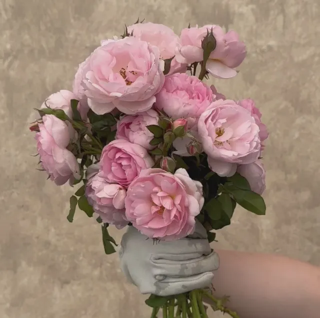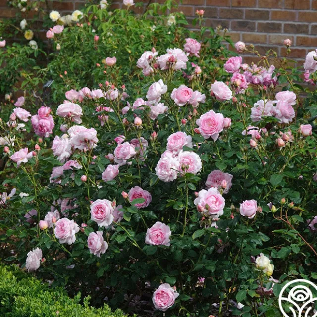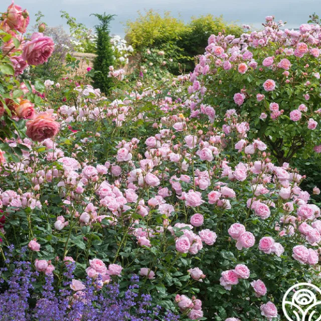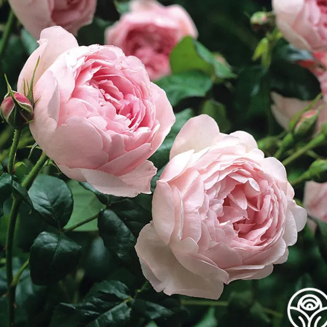 Scepter’d Isle® is a delightful English Rose with soft pink blossoms shading gently on the outer petals. Her 3 1/2″ cupped flowers of 45+ petals have a very powerful myrrh fragrance. Scepter’d Isle® produces prolific blooms that are borne in clusters on an upright, continual blooming plant. We love her for her strong canes with generous blossoms, bright yellow stamens, and dreamy, intense scent. She can handle dappled shade and is pollinator friendly!
