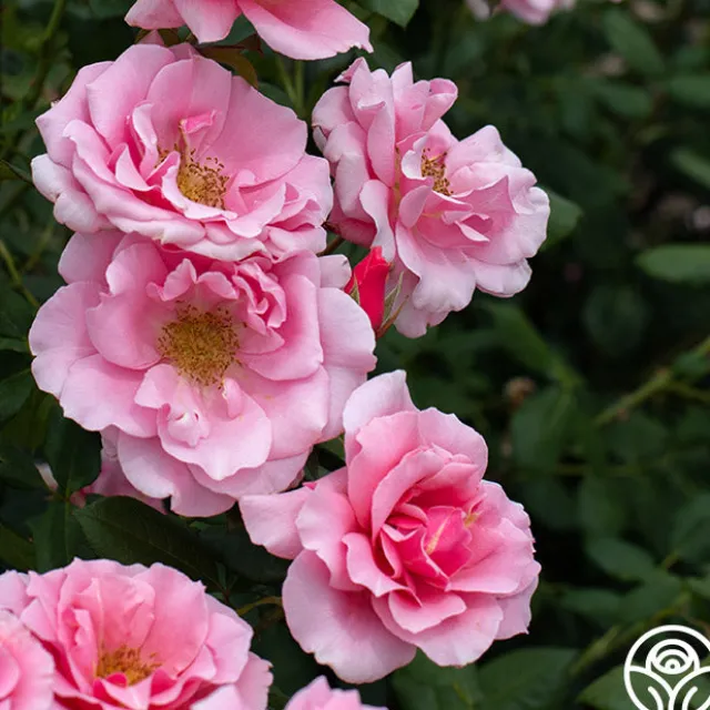 The double blooms (petals 30) are an apricot blend and have a fruity fragrance. The cupped flowers come in clusters of 5-8. It is an upright repeat blooming shrub rose with leathery olive green, coppery foliage. These plants are winter hardy in Iowa without protection.