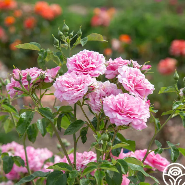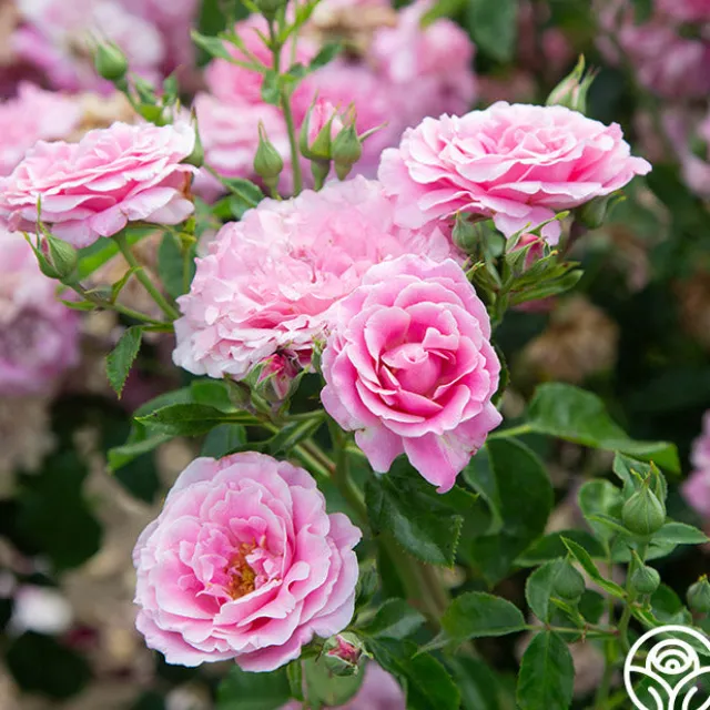 St. Elisabeth of Hungary has full, old-fashioned, pink 3 ½” blossoms with 26-40 petals produced in small clusters. This variety forms a bushy, well-branched plant with medium, glossy green foliage and can also be trained as a climber if desired. A hardy and drought-resistant rose, St. Elisabeth of Hungary can be used for exhibition, hedge, landscape, pillar, or shrub.