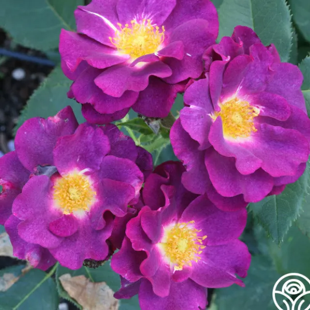 Stormy Weather™ is a beautiful Climber with her 4”, dark purple blooms with lighter reverse and centers with golden-yellow stamens. As she ages, her color fades to a gentle lavender. These cupped to flat blooms are produced in clusters and emit a spicy fragrance. Expect Stormy Weather™ to show more purple-blue tones in cooler weather.