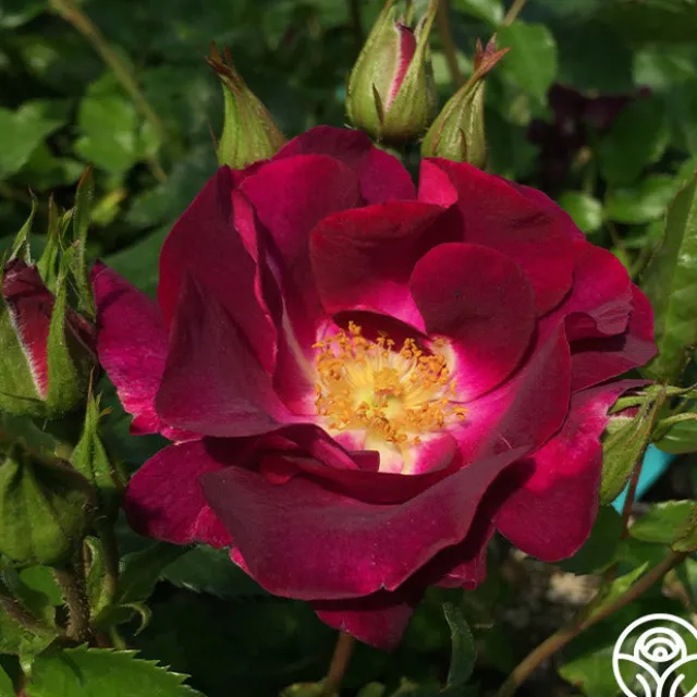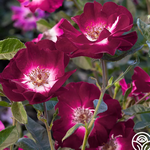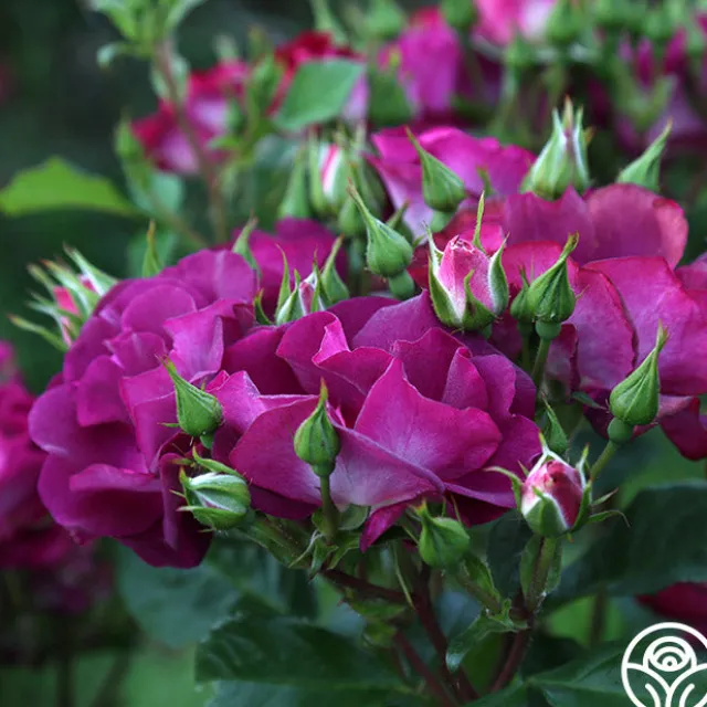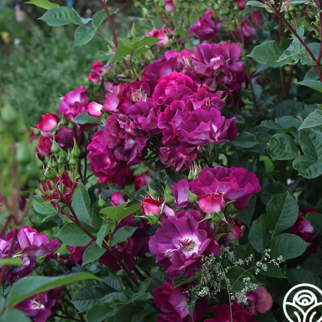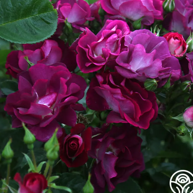 Sultry Sangria™ is a unique, mauve-colored Floribunda that may change color to deep pink in cooler conditions. Her delicate ruffled blossoms are produced in clusters with a moderate sweet rose fragrance. This rose is nearly thornless with glossy, green foliage.