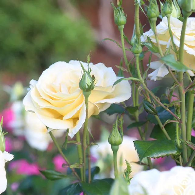 Sunshine Daydream™ keeps us wishing for summer months with her waves of flowers in a soft, butter yellow maturing to a dreamy cream as she gently unfurls. Each of her flowering stems bears up to eight 3” blooms against glossy, dark green foliage. Sunshine Daydream™ is extremely disease resistant and thrives in zones 6-9. We love her as a strong hedge, growing up to 6’ in height. She is a “must-have” for cutting gardens as well!!