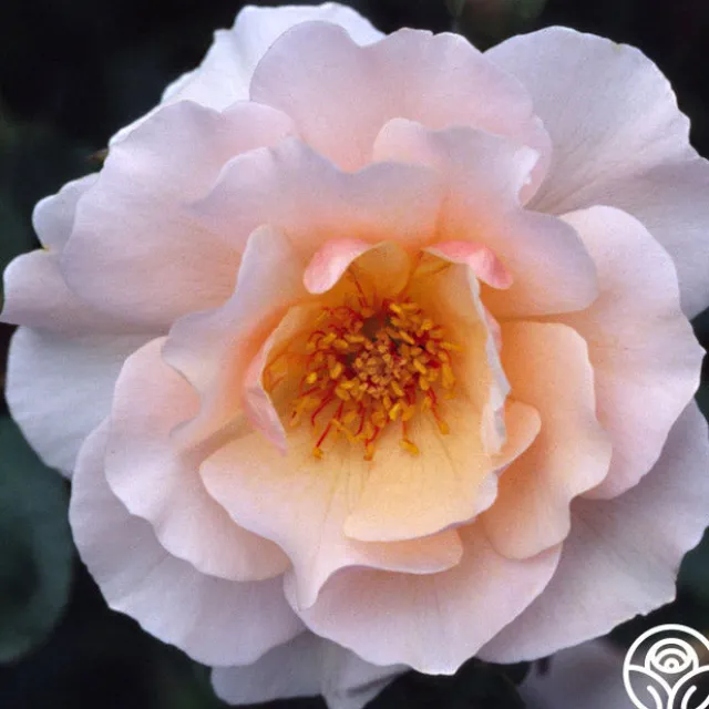 A rose to stand beside the beauty and grace of any young lady. Sweet Sixteen™ has outstanding rich golden centers nestled in petals of soft pink blended with soft peach. Sweet Sixteen™ is blessed with a wonderfully strong perfume and her blooms are borne in clusters on an upright bush. We love her beautiful crimson-red new foliage which matures to rich, leathery green.
