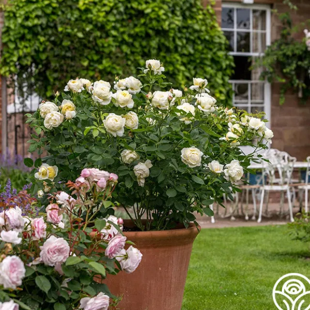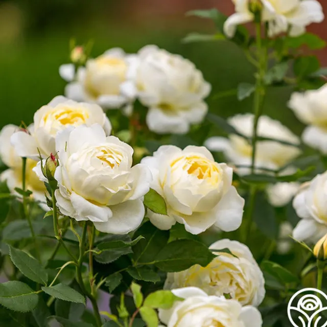Vanessa Bell is a beautiful pale yellow English Shrub rose from David Austin with hints of pink on her buds opening to medium-sized blooms that fade to white on the edges. Her fragrance smells like a cup of green tea with honey and lemon. Expect an upright, bushy growth habit averaging 4′ x 3′. Choose Vanessa Bell for beds, borders, or pots. She can also handle some partial shade if needed!