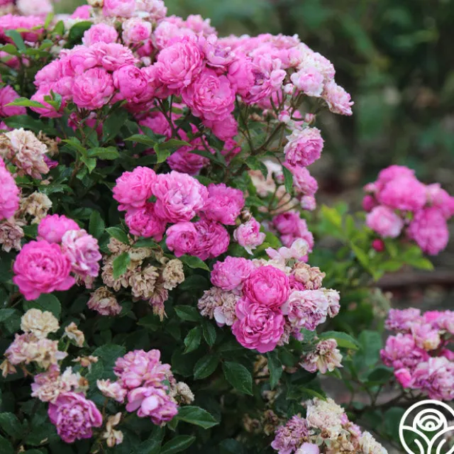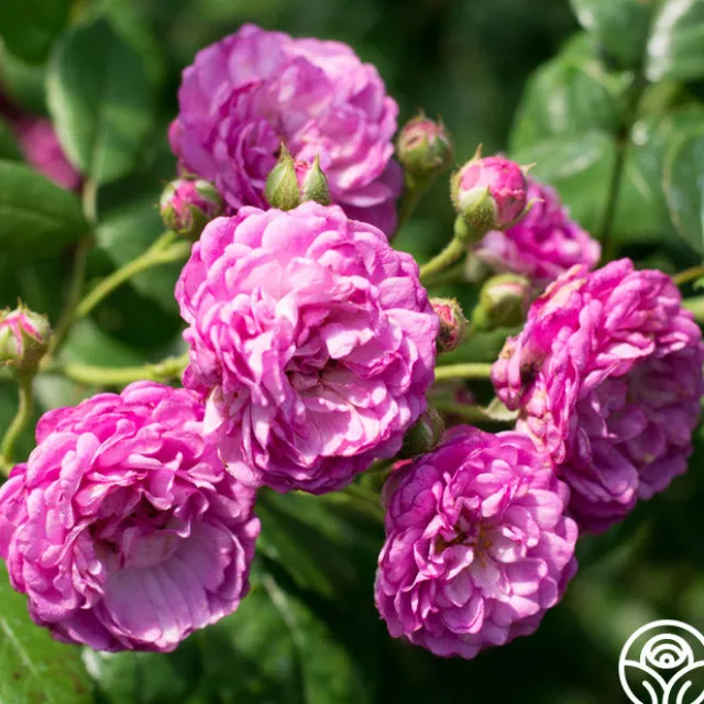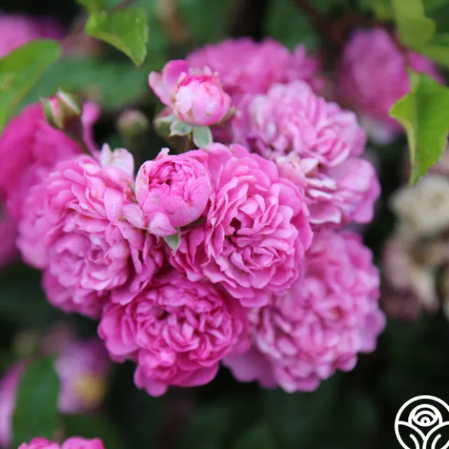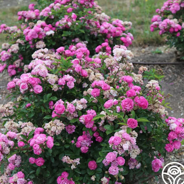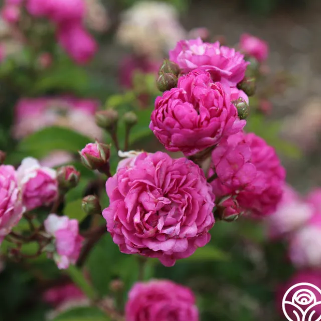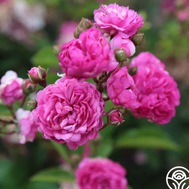 Vineyard Song by Ralph Moore produces large clusters of lavender-violet, double, 2″ blooms with 40+ petals. She is a continual blooming plant that will perfume the surrounding air with a delightful fragrance. Expect this rose to top out around 3-4’ tall.